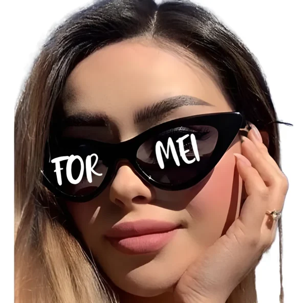 Óculos formato Gatinho. Lentes com produção UV e personalização nas laterais e lentes