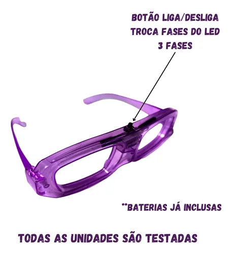 Destaque sua festa com óculos de LED coloridos e vibrantes. Fabricados em plástico resistente, eles são ideais para diferentes eventos, como aniversários, baladas e celebrações variadas.